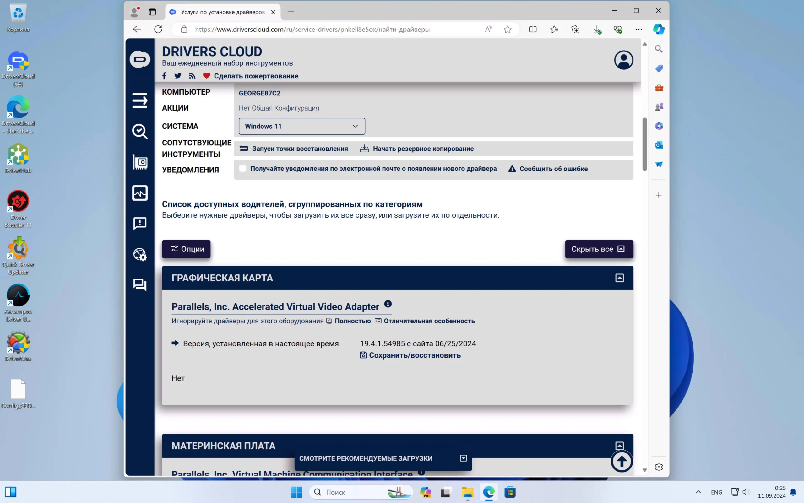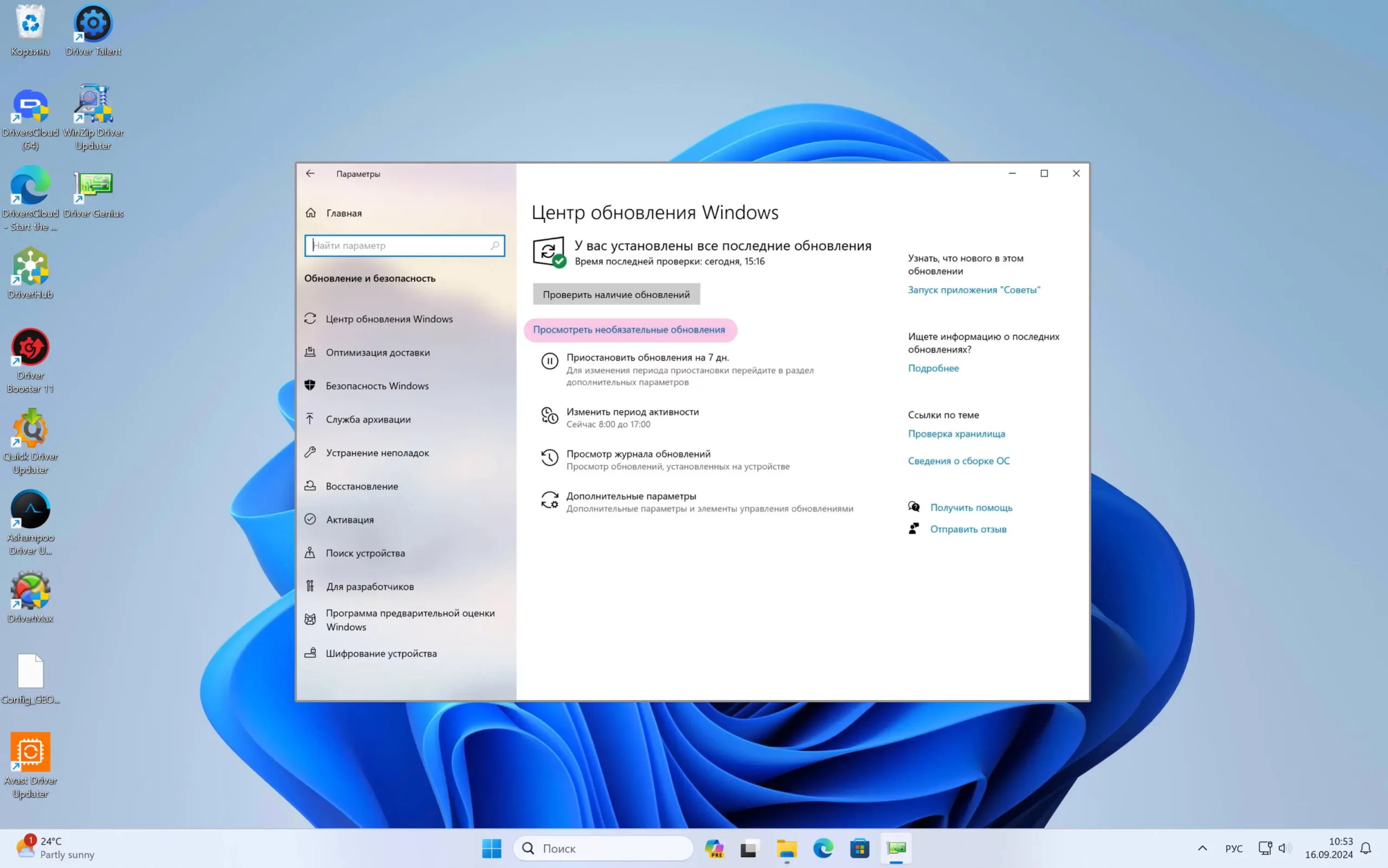 - Можно создать расписание проверки на наличие новых драйверов