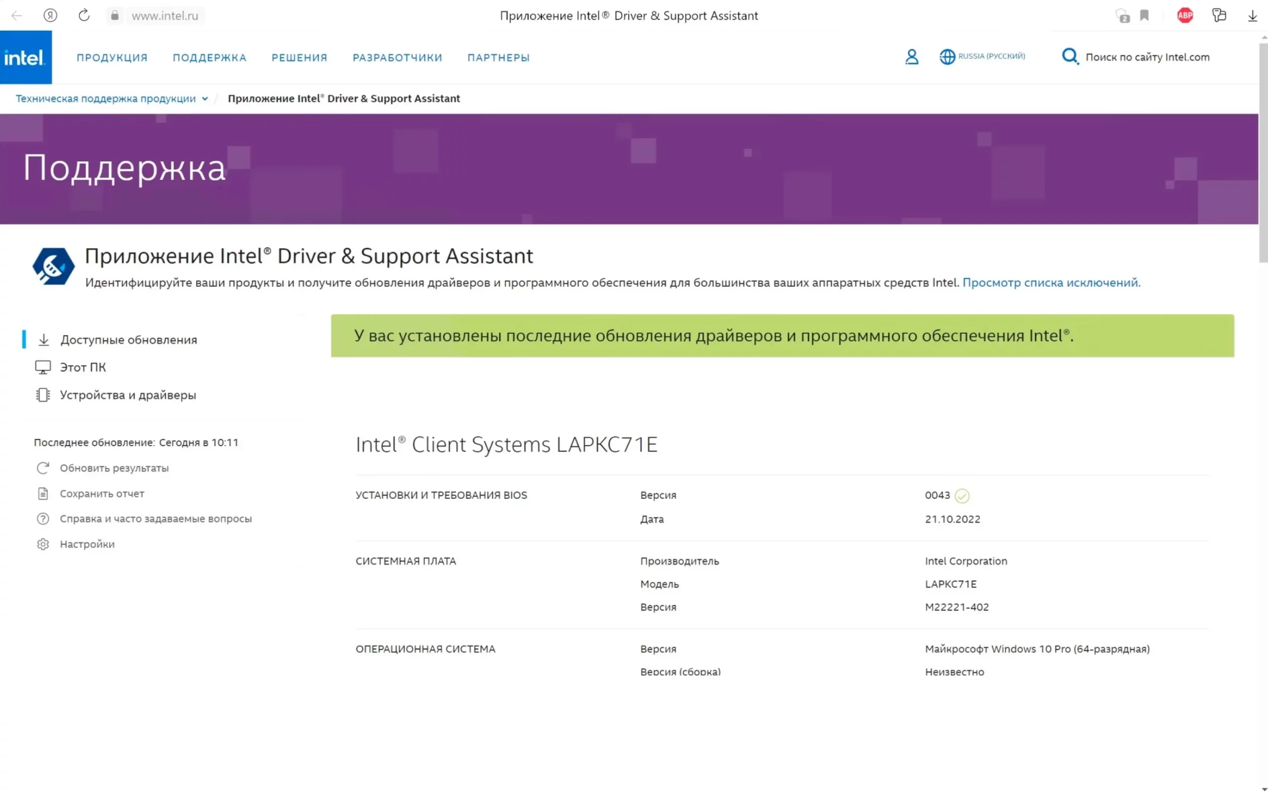 Intel выпустили свою программу, чтобы облегчить жизнь тем, кто пользуется их устройствами (процессорами, сетевыми адаптерами, встроенной графикой и так далее). Утилита регулярно сканирует компьютер и сообщает об обновлениях, а потом перенаправляет в браузер, где их можно загрузить и установить (все сразу или по отдельности). Там же вы можете посмотреть историю обновлений и подробную информацию о ваших продуктах Intel, а еще найти ссылки на справочные материалы.