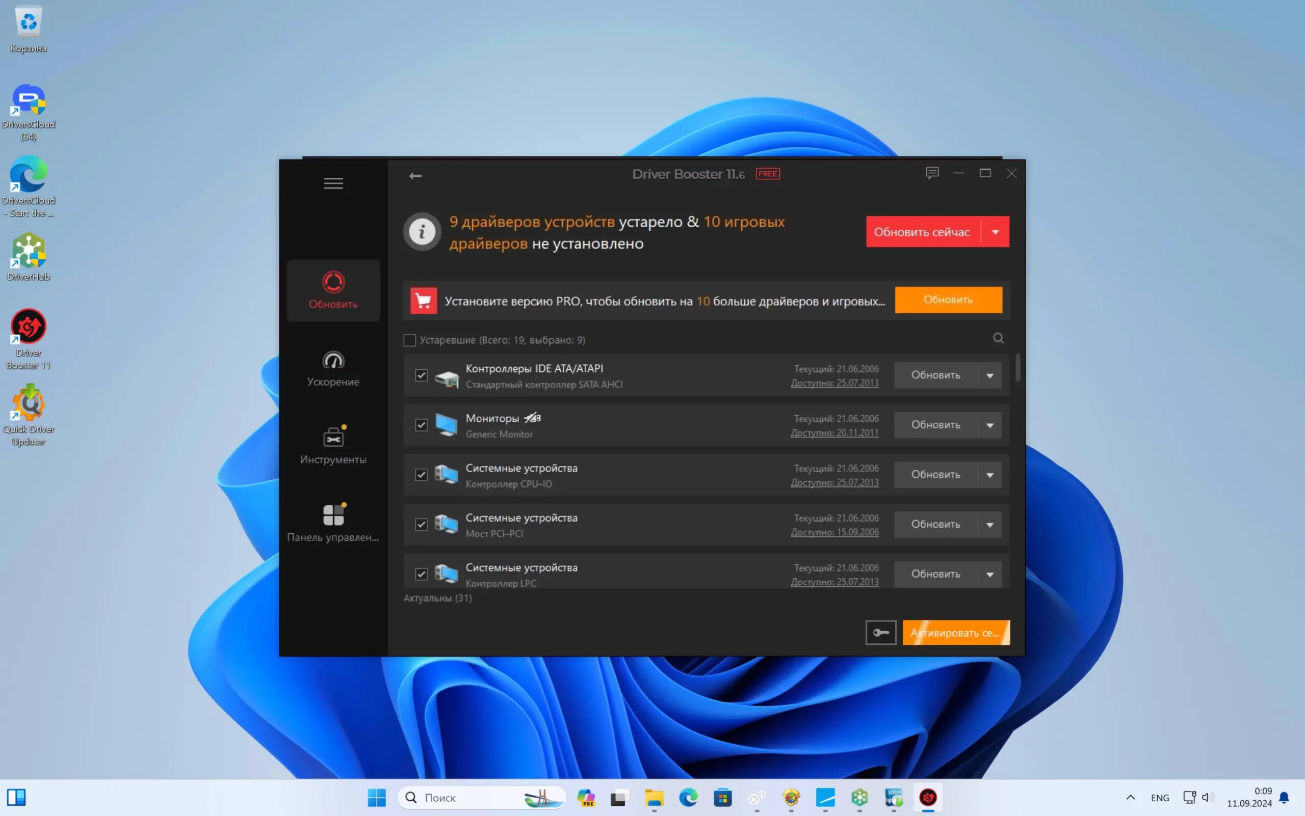 Этот установщик драйверов для Windows 11, 10, 8 и 7 выделяется приятным дизайном. Ashampoo Driver Updater использует рекомендованные производителями драйверы, так что можно меньше беспокоиться о безопасности. Однако в нем нет функции массовой загрузки драйверов и нельзя настроить скан и обновление по расписанию. В бесплатной версии обновлять драйверы придется вручную и по одному.